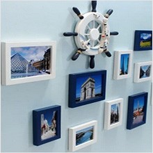地中海客厅实木照片墙